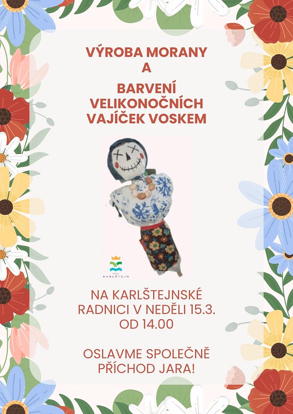 PŘIJĎTE NÁM POMOCI S VÝROBOU KARLŠTEJNSKÉ MORANY A OBARVĚTE SI VELIKONOČNÍ VAJÍČKO V NEDĚLI 15.3.2026 OD 14.00 NA KARLŠTEJNSKÉ RADNICI.